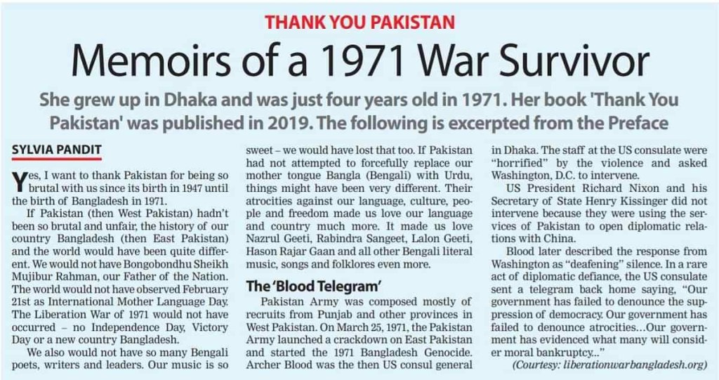 This is a genocide which US don’t remember but Bangladesh can never forget. India can never forget. Bangladesh received continuous moral support from India since the beginning of the Liberation War. Indira Gandhi, the Prime Minister of India during that time, was able to secure support from the Soviet Union, The United Kingdom and France to ensure that there would be no directives in favour of Pakistan in the United Nations Security Council. When West-Pakistan launched attacks against India on the 3rd of December 1971, the Indian military forces joined Bangladeshi guerrilla forces to fight against the West-Pakistani military. On 16th December 1971, Pakistan army surrendered. Hence, In India we celebrate Vijay Diwas on 16th December and In Bangladesh, people celebrate victory day on 16th December.